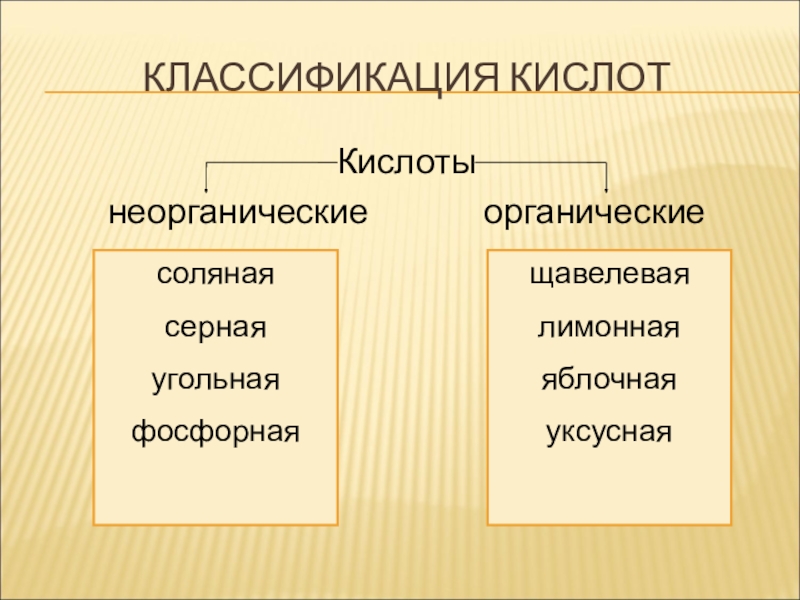 Слайд 7КЛАССИФИКАЦИЯ КИСЛОТ