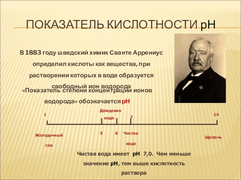 В 1883 году шведский химик Сванте Аррениус определил кислоты