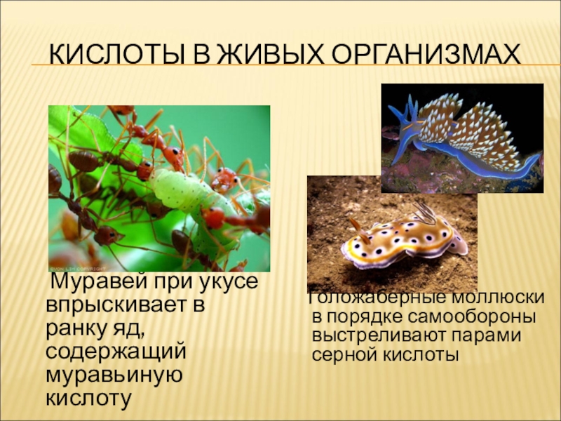 Слайд 25КИСЛОТЫ В ЖИВЫХ ОРГАНИЗМАХ