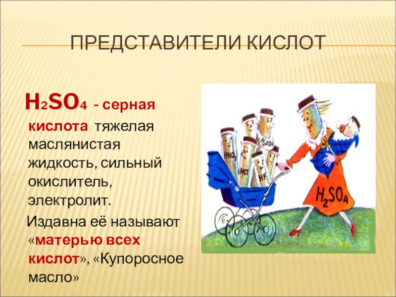 Слайд 40ПРЕДСТАВИТЕЛИ КИСЛОТ