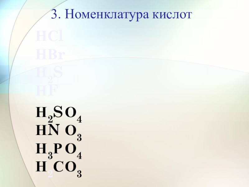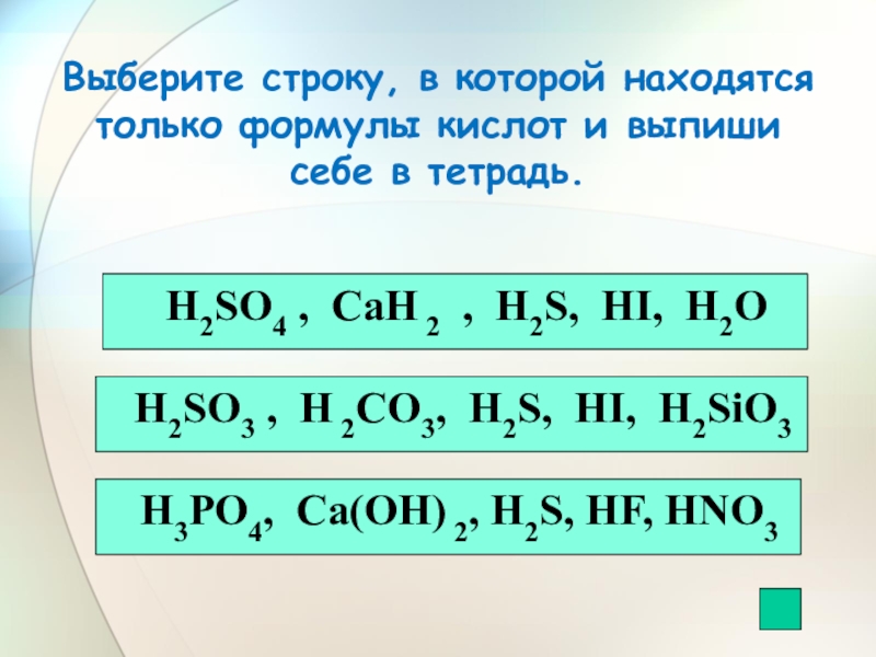 Н2SО3 , Н 2СО3, Н2S, НI, Н2SiО3