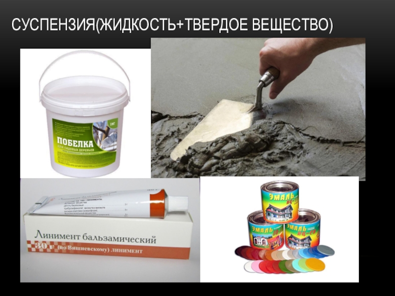 Слайд 7Суспензия(жидкость+ТВЕРДОЕ ВЕЩЕСТВО)