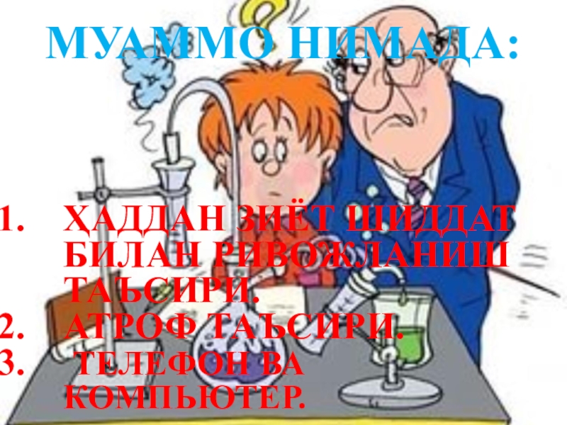 МУАММО НИМАДА:ҲАДДАН ЗИЁТ ШИДДАТ БИЛАН РИВОЖЛАНИШ ТАЪСИРИ.АТРОФ ТАЪСИРИ. ТЕЛЕФОН ВА КОМПЬЮТЕР.