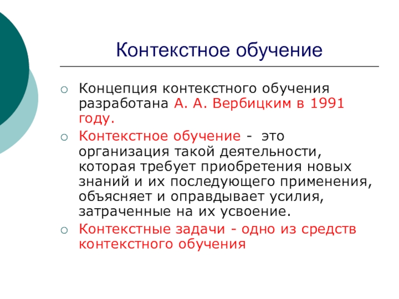 Концепция контекстного обучения разработана А. А. Вербицким в 1991 году.