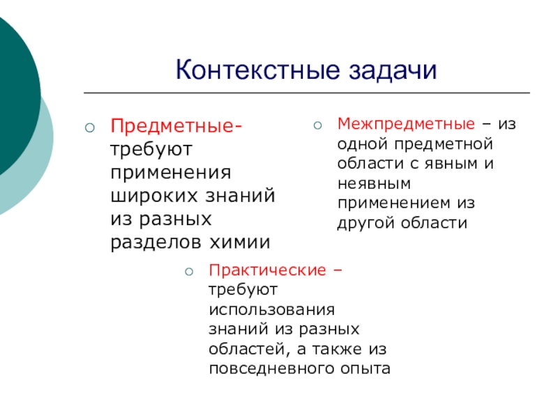 Практические – требуют использования знаний из разных областей, а также из повседневного опыта
