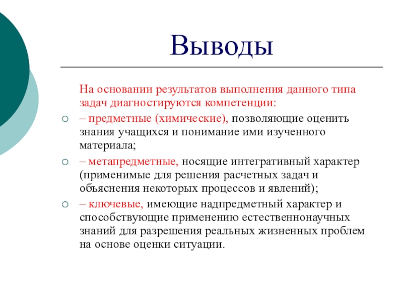– предметные (химические), позволяющие оценить знания учащихся и понимание ими изученного материала;