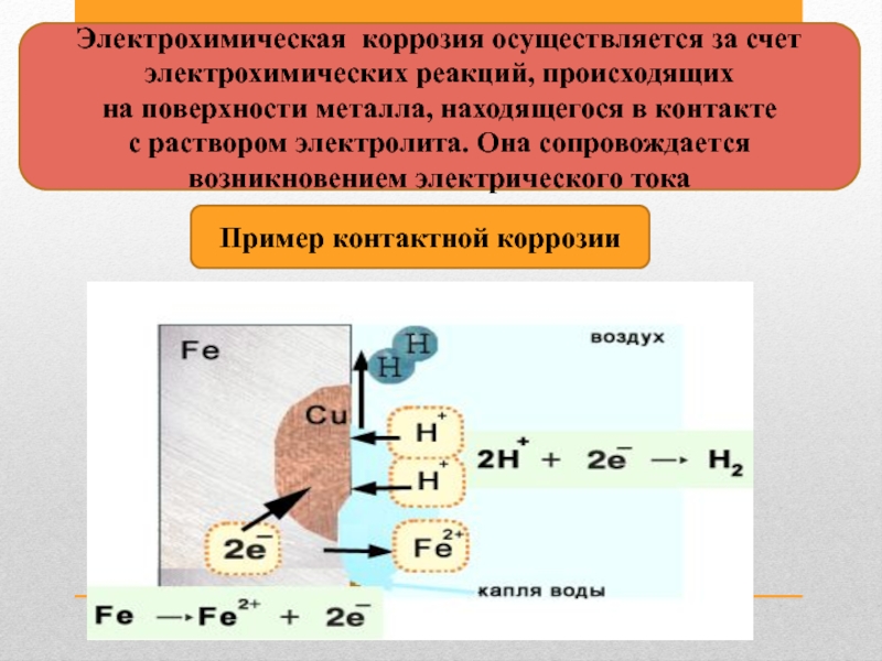 Слайд 11Электрохимическая коррозия осуществляется за счет