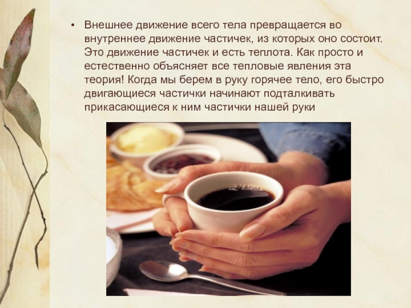 Слайд 7Внешнее движение всего тела превращается во внутреннее движение частичек, из которых