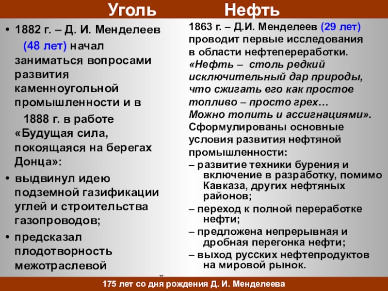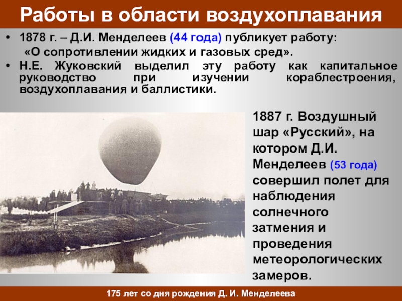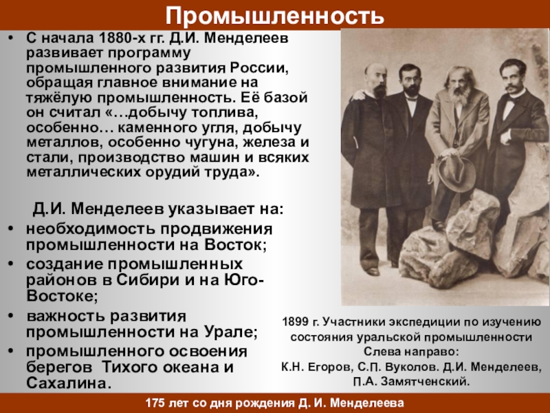 Дмитрий Иванович Менделеев и его вклад в развитие отечественной и мировой науки175 лет со дня рождения Д.