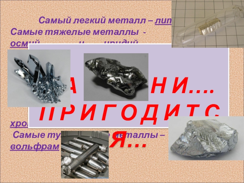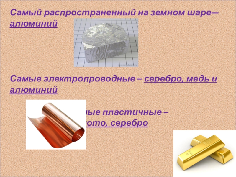 Некоторые неактивные металлы существуют в виде самородков: золото, серебро, платина, медь
