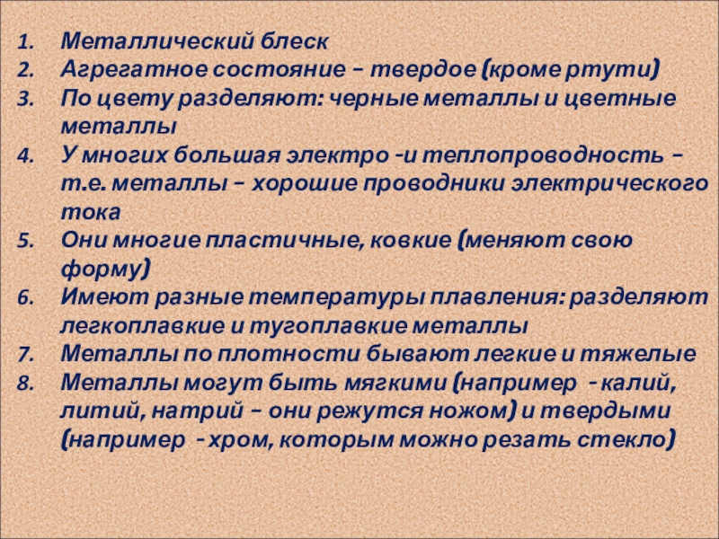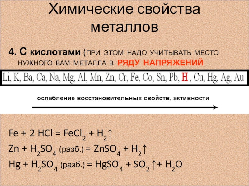 Химические свойства металлов