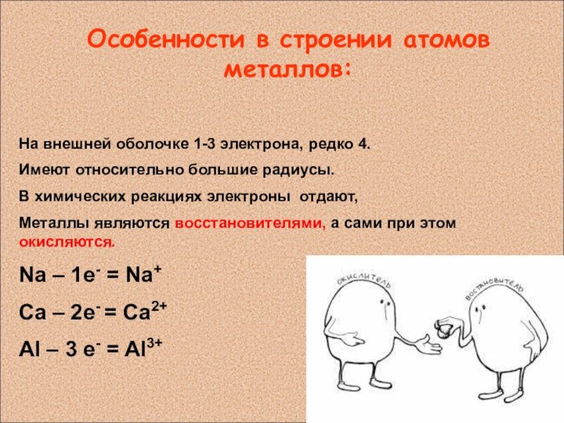 Атомы металлов отдают электроны с последнего уровня, являясь при этом восстановителями.
