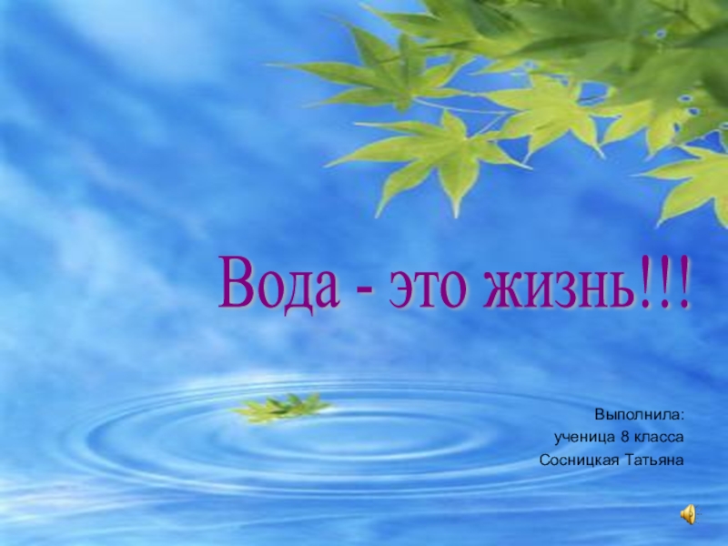 Вода - это жизнь!!!Выполнила:ученица 8 классаСосницкая Татьяна