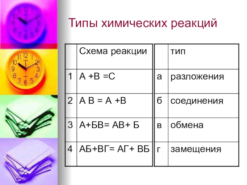 Слайд 6Расставить коэффициенты в схемах химических реакции, определите их тип: