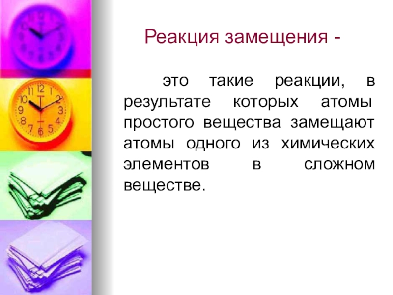 Реакция замещения -  это такие реакции, в результате которых атомы простого вещества замещают атомы одного из