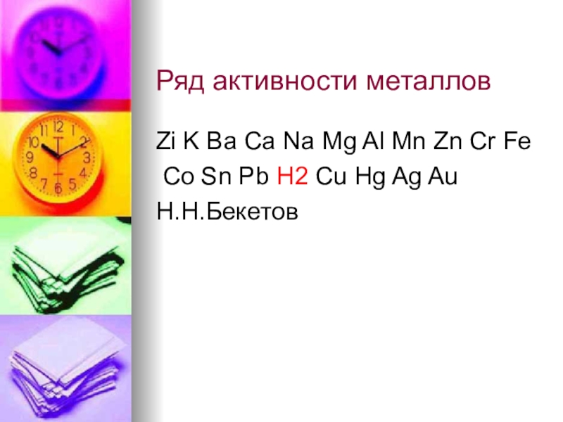 Ряд активности металлов Zi K Ba Ca Na Mg Al Mn Zn Cr Fe Co Sn Pb