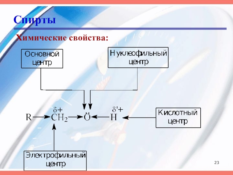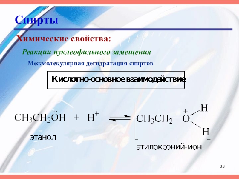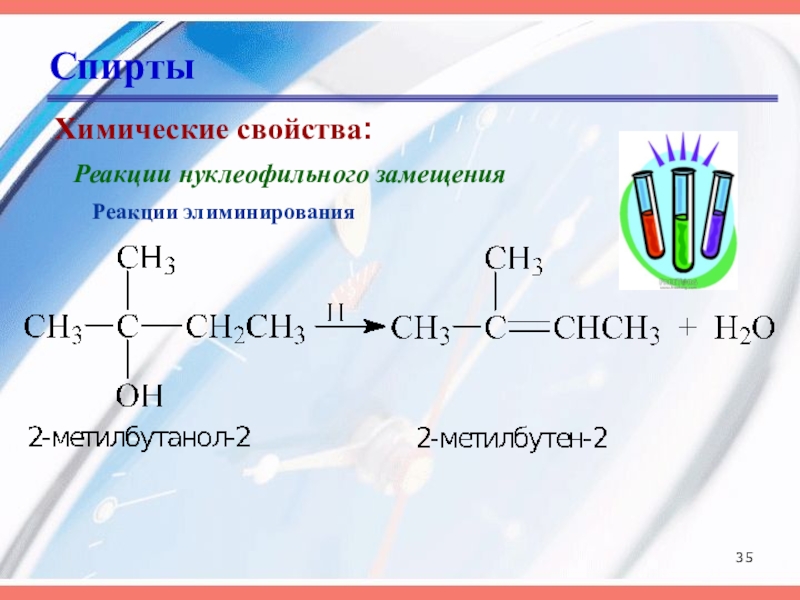 СпиртыХимические свойства:Реакции нуклеофильного замещения Реакции элиминирования