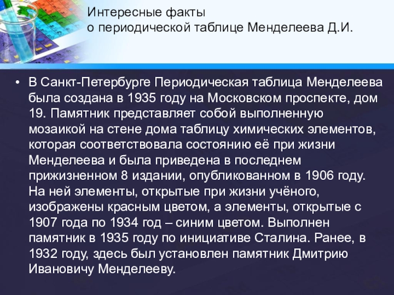Перебирались всевозможные способы организации элементов в таблицу. Для создания таблицы по категориям он обратился к пасьянсу. Он укладывал элементы в соответствии с их специфическими свойствами, а затем упорядочивал их в каждом столбце в соответствии с их атомным весом.