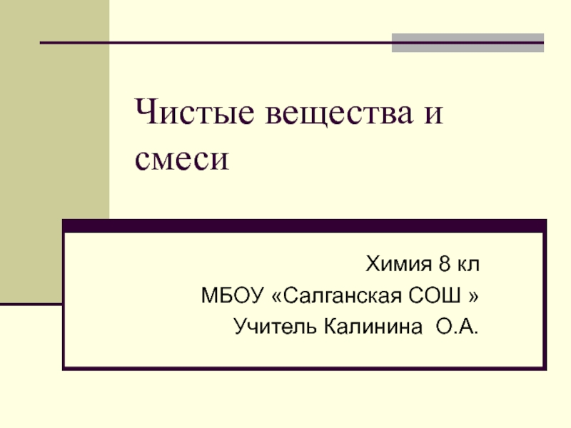 Чистые вещества и смесиХимия 8 клМБОУ «Салганская СОШ »Учитель Калинина О.А.