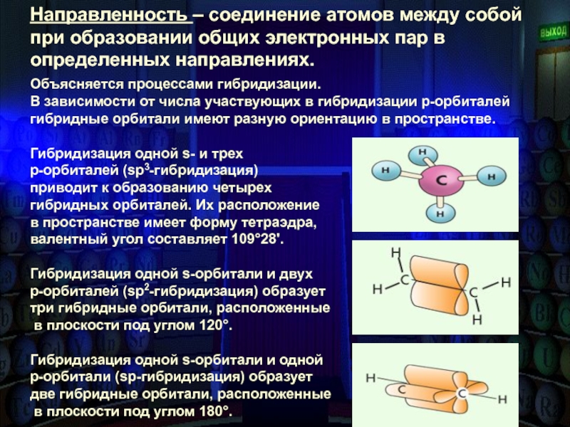 Направленность – соединение атомов между собой при образовании общих электронных пар в определенных направлениях.