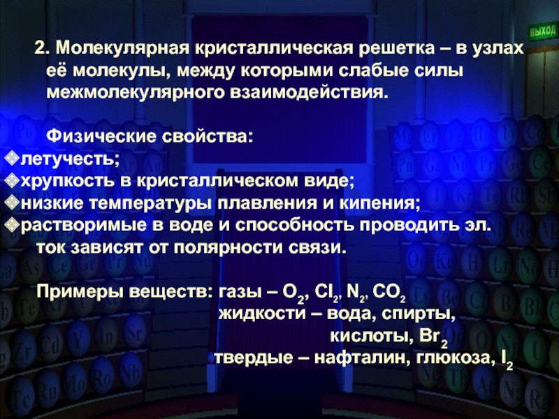 Вещества с ковалентной связью могут иметь два типа кристаллической решетки.