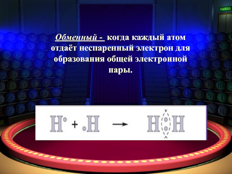 Обменный - когда каждый атом отдаёт неспаренный электрон для образования общей электронной пары.