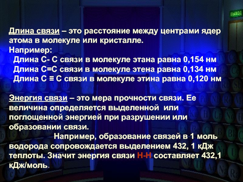 Длина связи – это расстояние между центрами ядер атома в молекуле или кристалле.