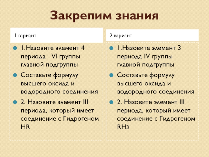 1.Назовите элемент 3 периода IV группы главной подгруппы