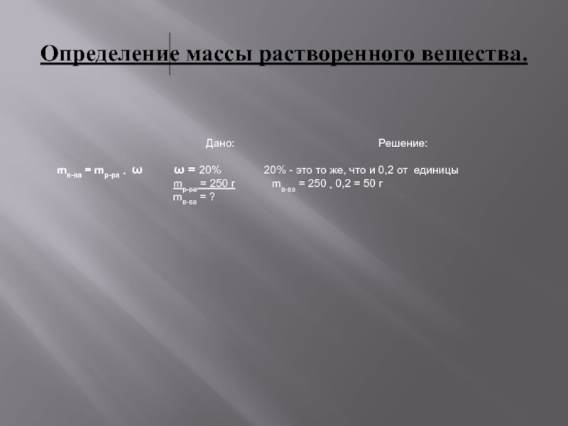 mв-ва = mр-ра * ω ω = 20% 20% - это то же, что и 0,2 от единицы