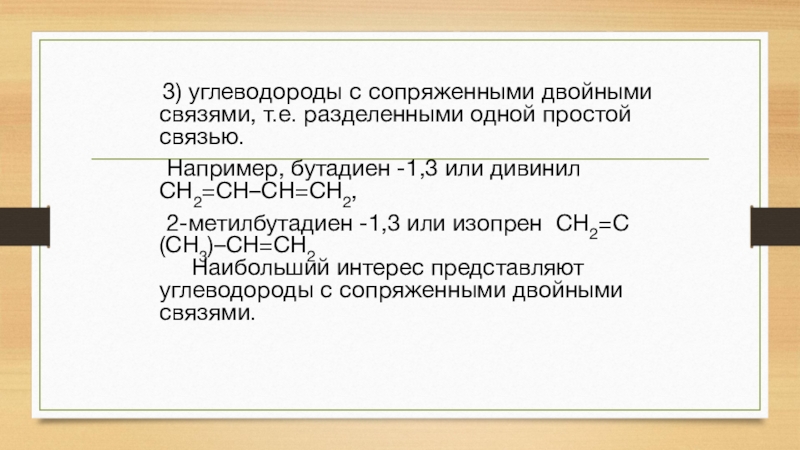 Слайд 4 3) углеводороды с сопряженными двойными связями, т.е. разделенными одной простой