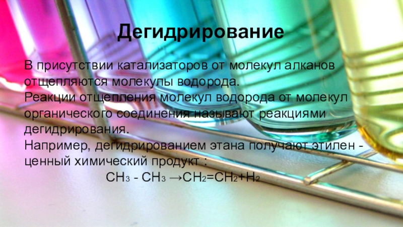 В присутствии катализаторов от молекул алканов отщепляются молекулы водорода.