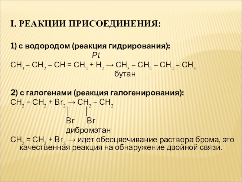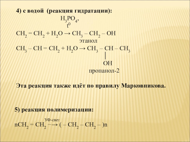 CH2 = CH2 + [O] = обесцвечивание раствора перманганата калия.