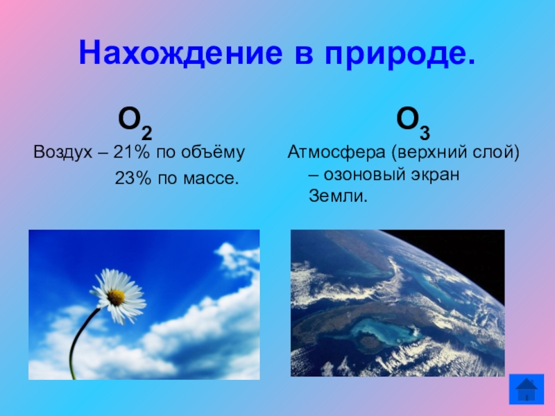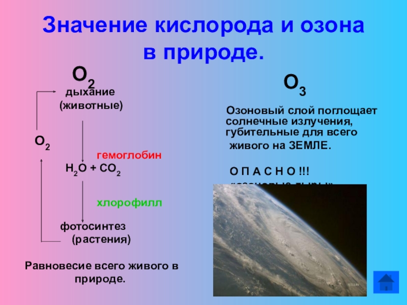 Атмосфера (верхний слой) – озоновый экран Земли.