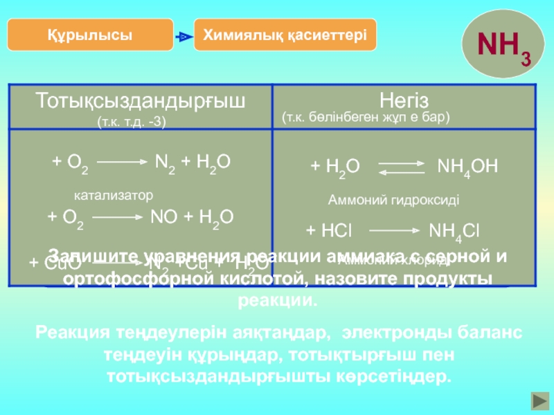 Запишите уравнения реакции аммиака с серной и ортофосфорной кислотой, назовите продукты реакции.