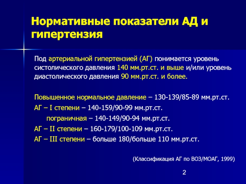 (Классификация АГ по ВОЗ/МОАГ, 1999)