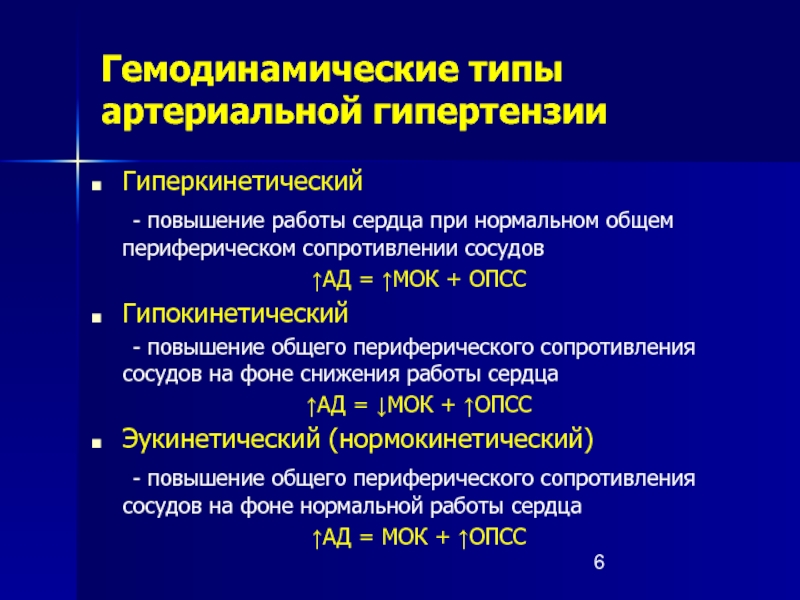 Слайд 6Гемодинамические типы артериальной гипертензии