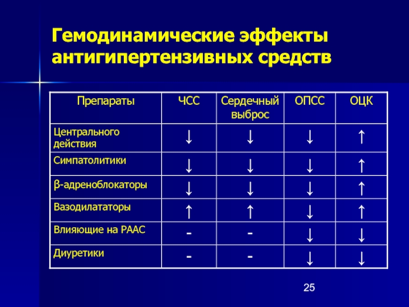 Слайд 25Гемодинамические эффекты антигипертензивных средств