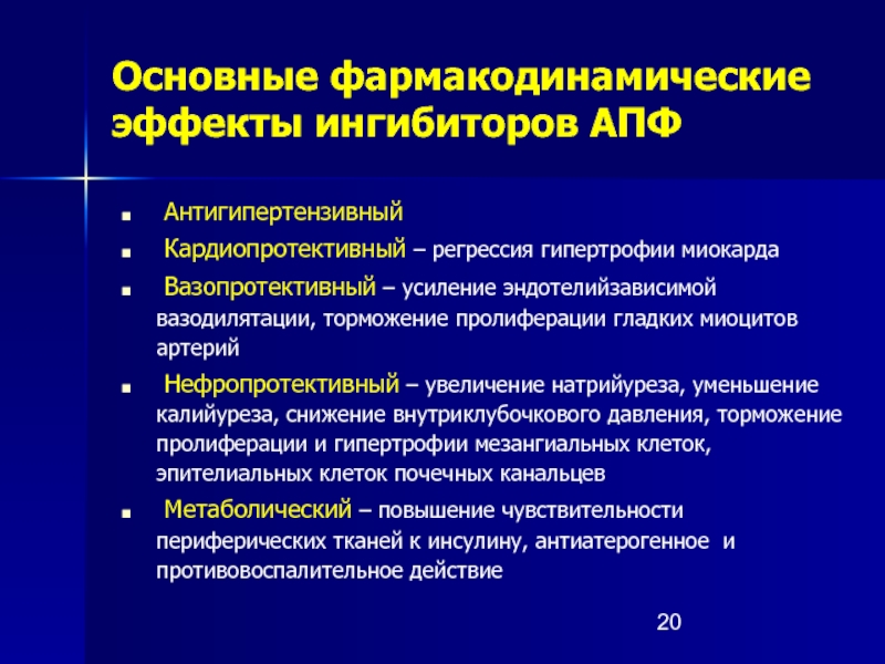 Слайд 20Основные фармакодинамические эффекты ингибиторов АПФ