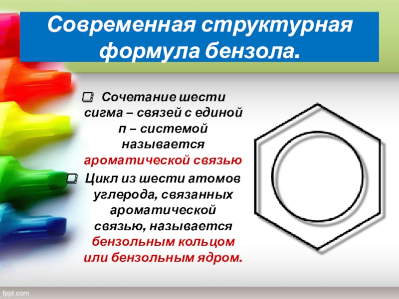 Сочетание шести сигма – связей с единой п – системой называется ароматической связью