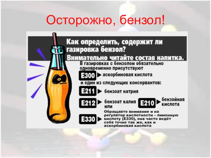 Слайд 19Осторожно, бензол!