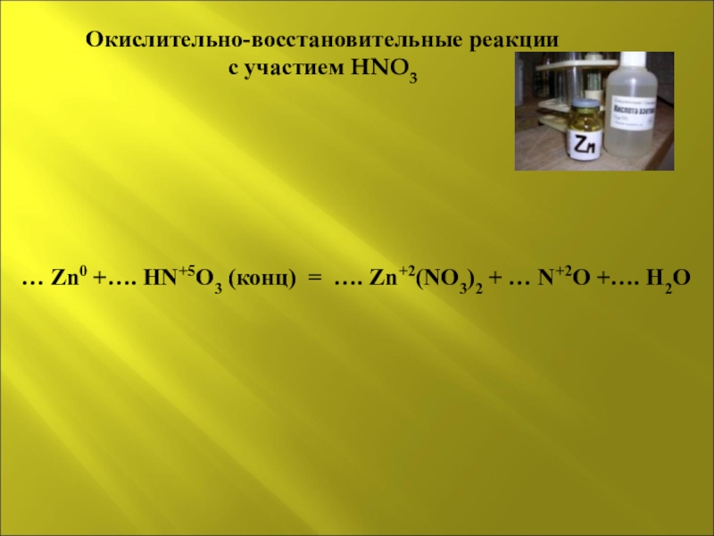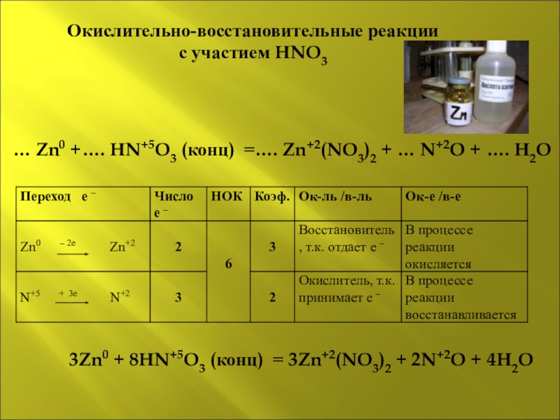 … Zn0 +…. HN+5O3 (конц) =…. Zn+2(NO3)2 + … N+2O + …. H2O