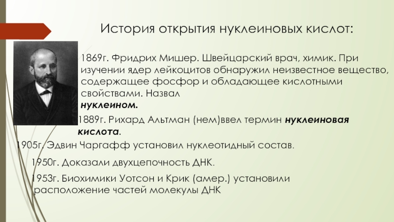 1889г. Рихард Альтман (нем)ввел термин нуклеиновая кислота.
