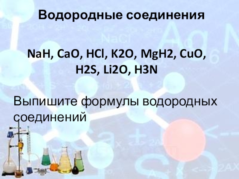 CuO, MgH2, CaO, Al2O3, NaH, H2S, Cl2O7, NH3