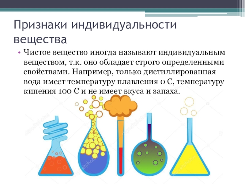 Чистое вещество иногда называют индивидуальным веществом, т.к. оно обладает