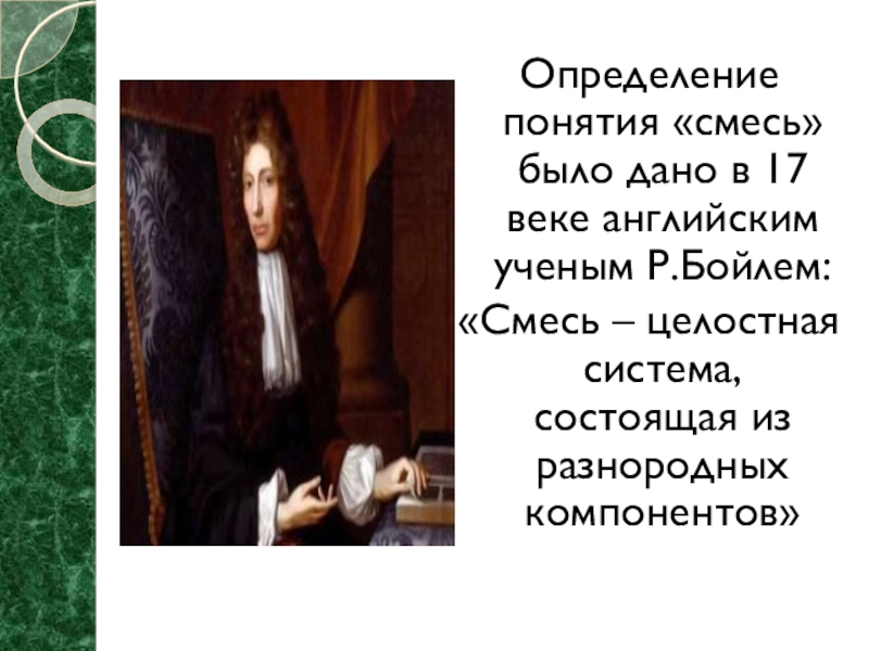 Слайд 4Определение понятия «смесь» было дано в 17 веке английским ученым Р.Бойлем: