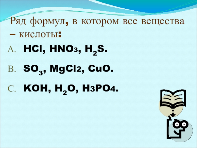 Слайд 4Ряд формул, в котором все вещества – кислоты: