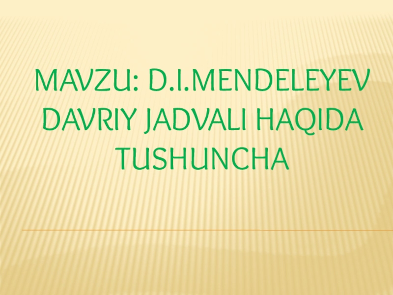 Слайд 1Mavzu: D.I.Mendeleyev davriy jadvali haqida tushuncha