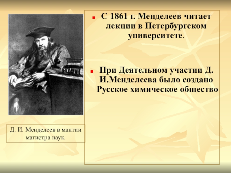 Слайд 13С 1861 г. Менделеев читает лекции в Петербургском университете.