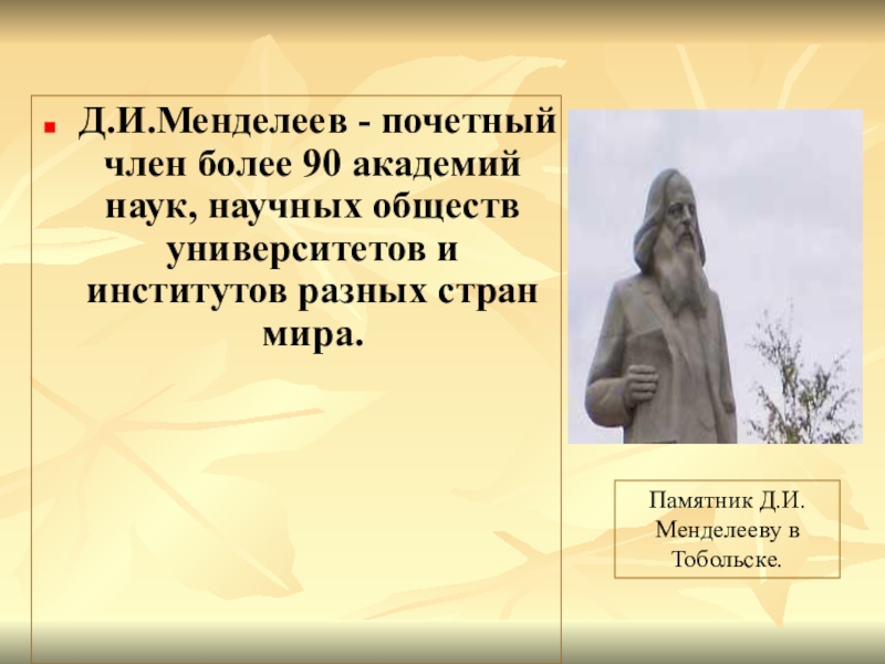 Слайд 17Д.И.Менделеев - почетный член более 90 академий наук, научных обществ университетов