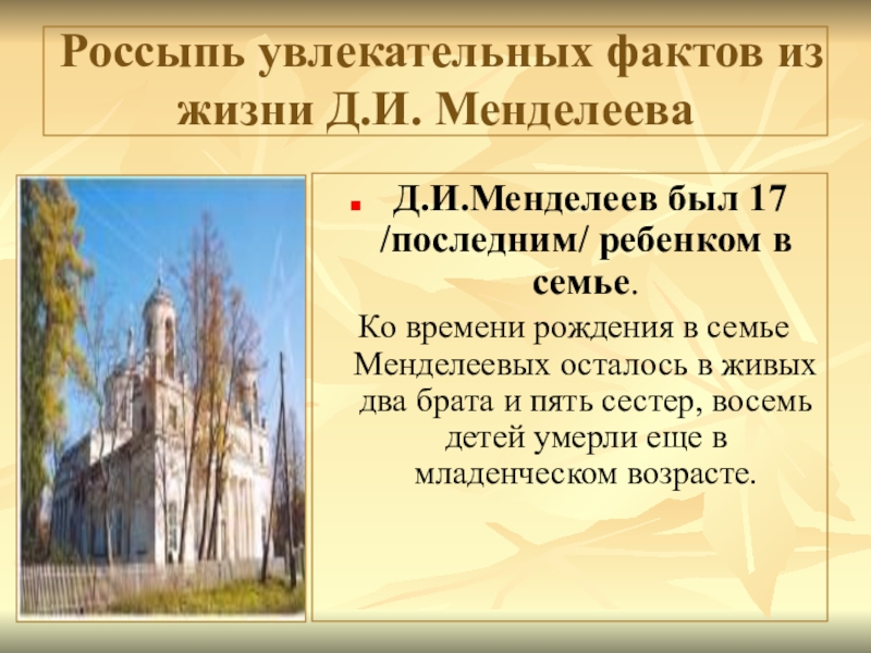 Россыпь увлекательных фактов из жизни Д.И. Менделеева